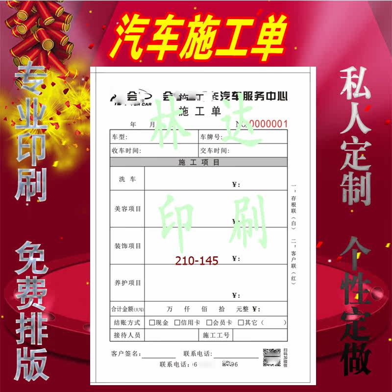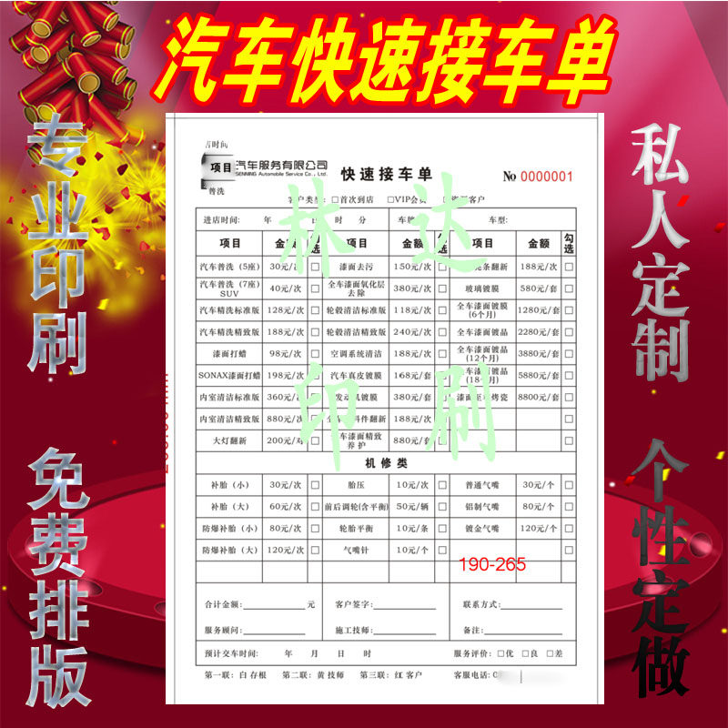 Customized vehicle safety inspection form printing Auto repair quotation list Inspection list Quick pick-up list Beauty list