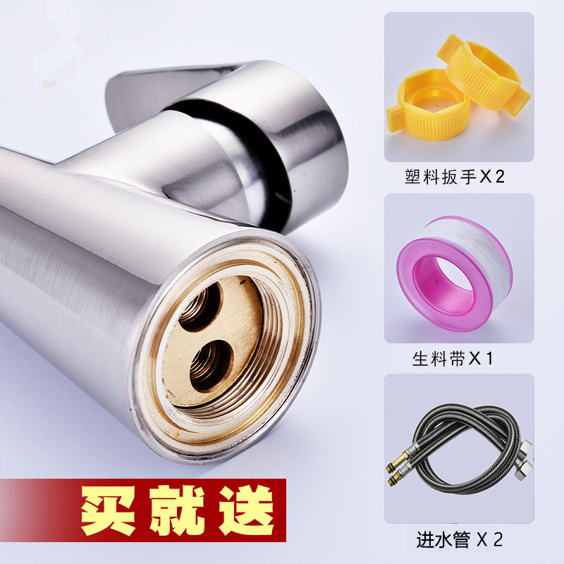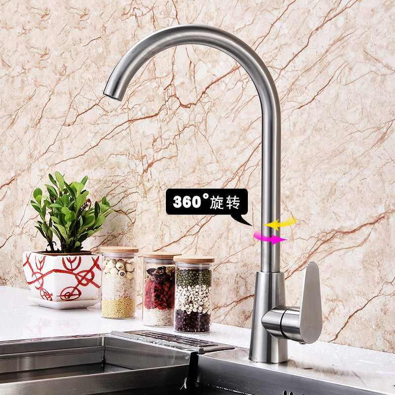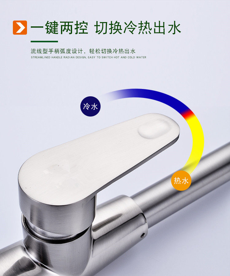 All-copper kitchen faucet single hole cold and hot stainless steel sink washing basin rotates washing pool faucet