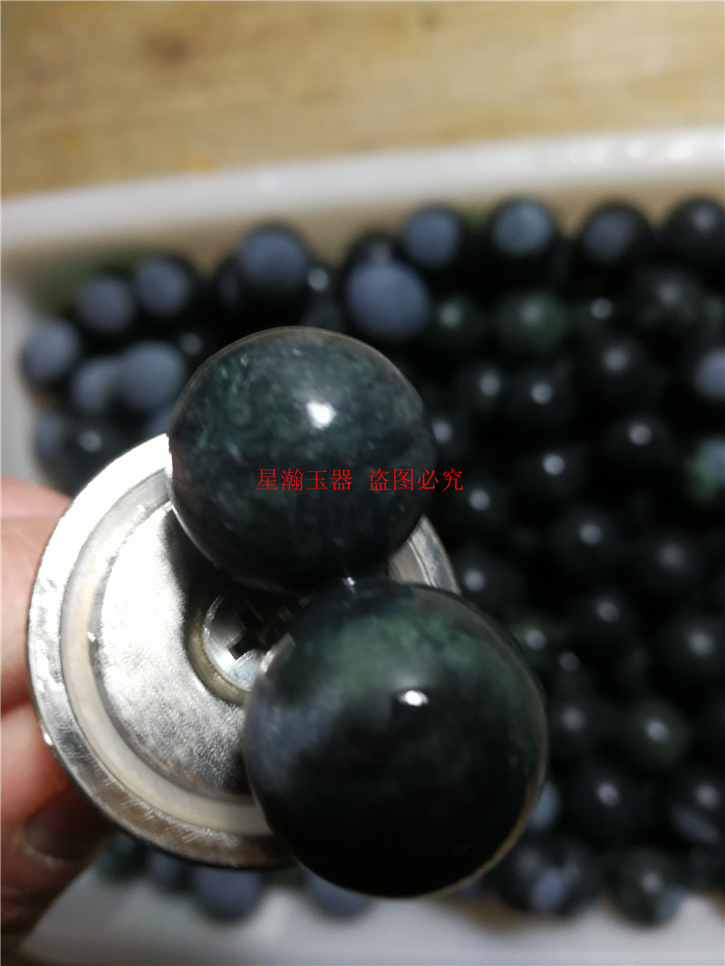 Natural live magnetic ink jade disc black green jade 18mm shocking bead shocking dish stir-fried vegetable beads purifying water quality hot pot 4