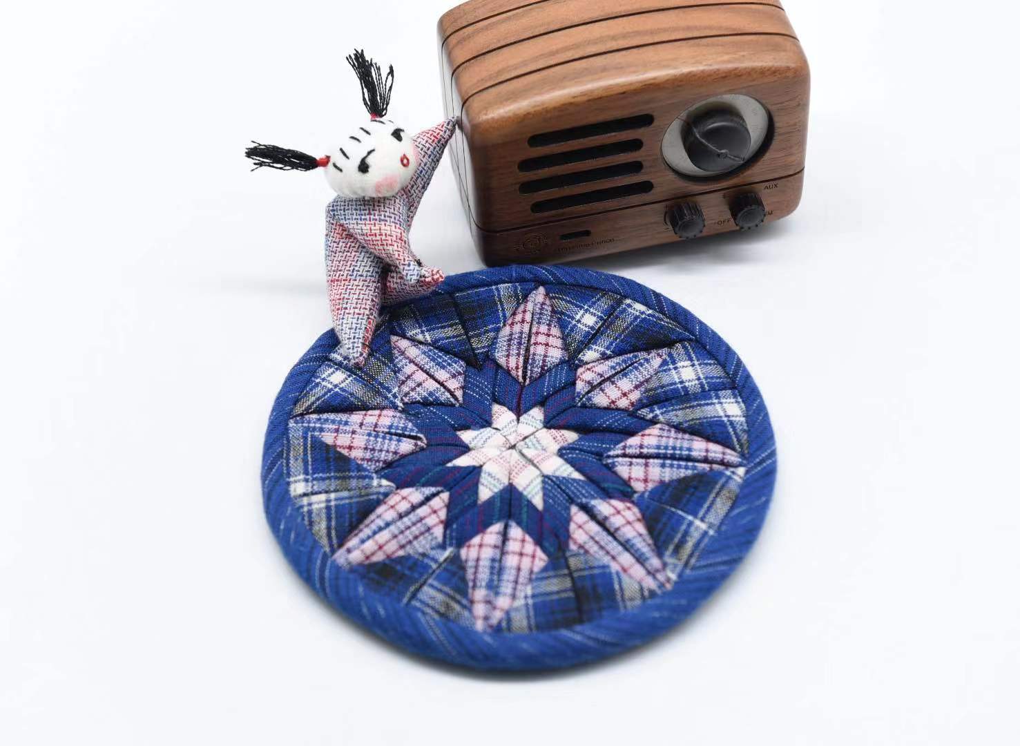 Coaster handmade Chongming native cloth original absorbent super thick pile embroidered three-dimensional patchwork tea coaster insulation pad tea ceremony zero match