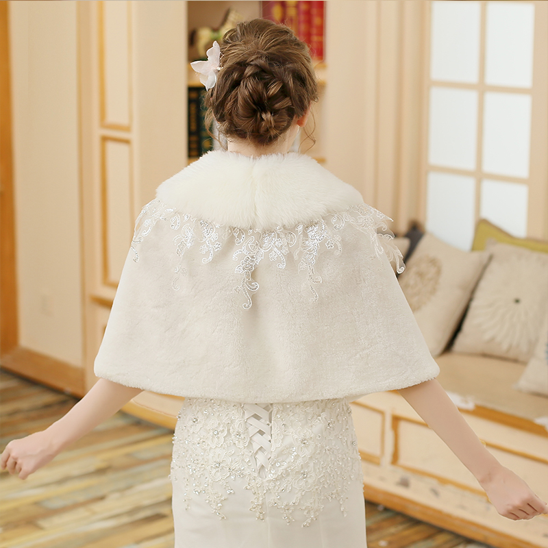 Fur Cape New Bride White Cloak Imitation Rabbit Fur Short Version Wedding Dresses External Hitch Warm And Soft Shawl