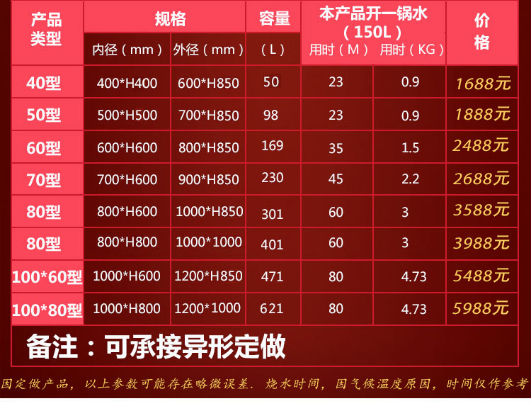 Thickened inner diameter 40 depth 40cm (50L double fire thickened inner diameter 50 depth 50cm (100L double fire thickened inner diameter 60 depth 60cm (170L triple fire thickened inner diameter)
