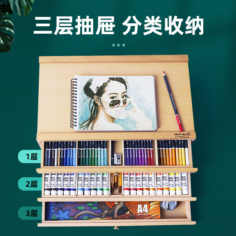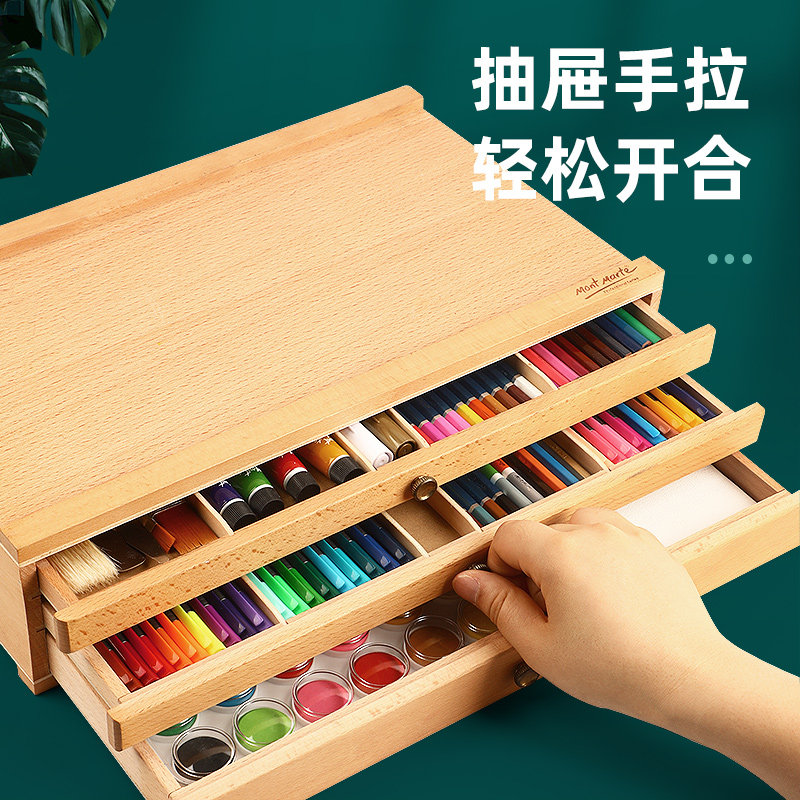 Mummat drawer containing box wood colored lead containing box drawing frame drawing box desktop oil painting case sketch drawing board suit Alien art and art examination tool-Taobao