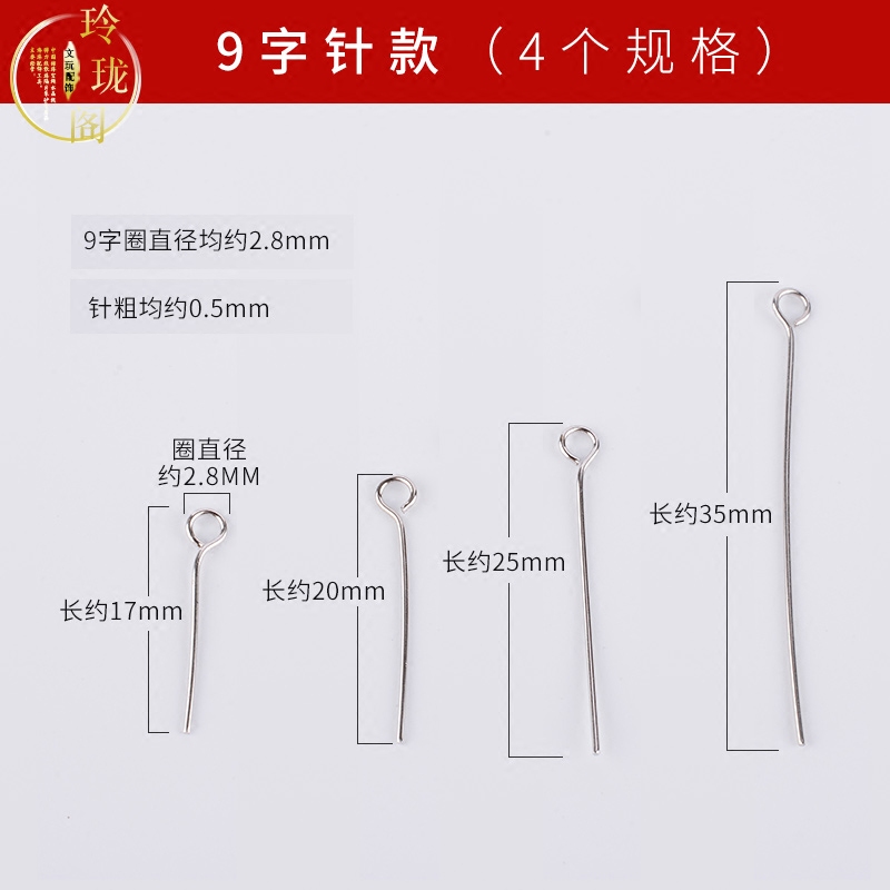 DIY Ornament Accessories Handmade Material 9 Character Pin 15 -35mm Ear Accessories Earrings Needle Accessories 925 Silver Bead Head 9 Handwriting
