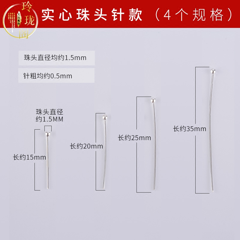 925 silver bead head 9-word needle in the shape of a