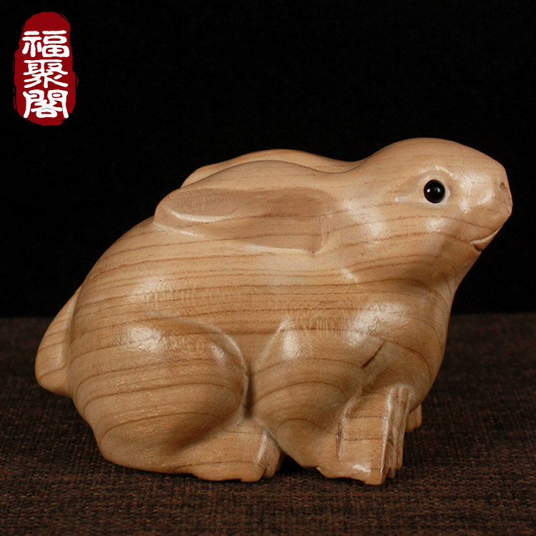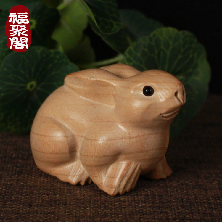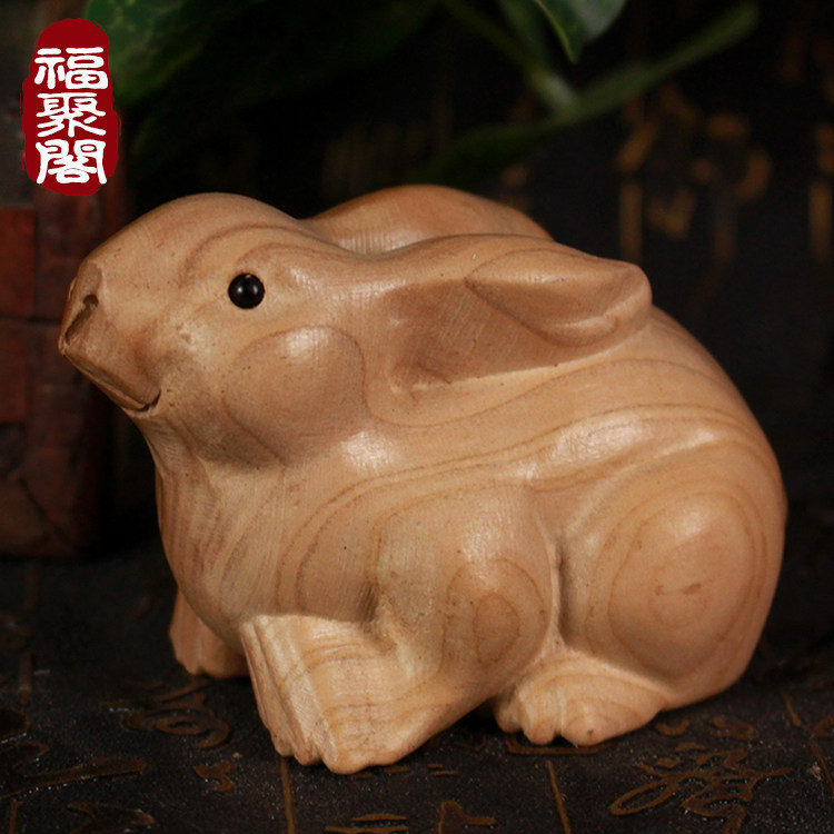 Peach Wood Rabbit Pendulum Piece Wood Carving Zodiac Rabbit no lacquer wood solid log jade Rabbit auspicious Merchants for the delivery of the play piece
