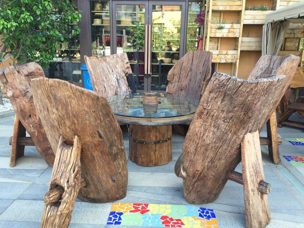 Yunnan Old Wooden Head Weathered Wood Old Wheel Table Chief Chair Original Eco Solid Wood Residential Guest House Innate