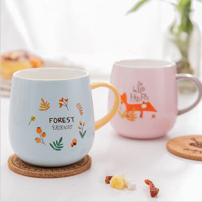 High white porcelain healthy water cup small fox Live tea cup food grade coffee cup lovers to cup ceramic cup H