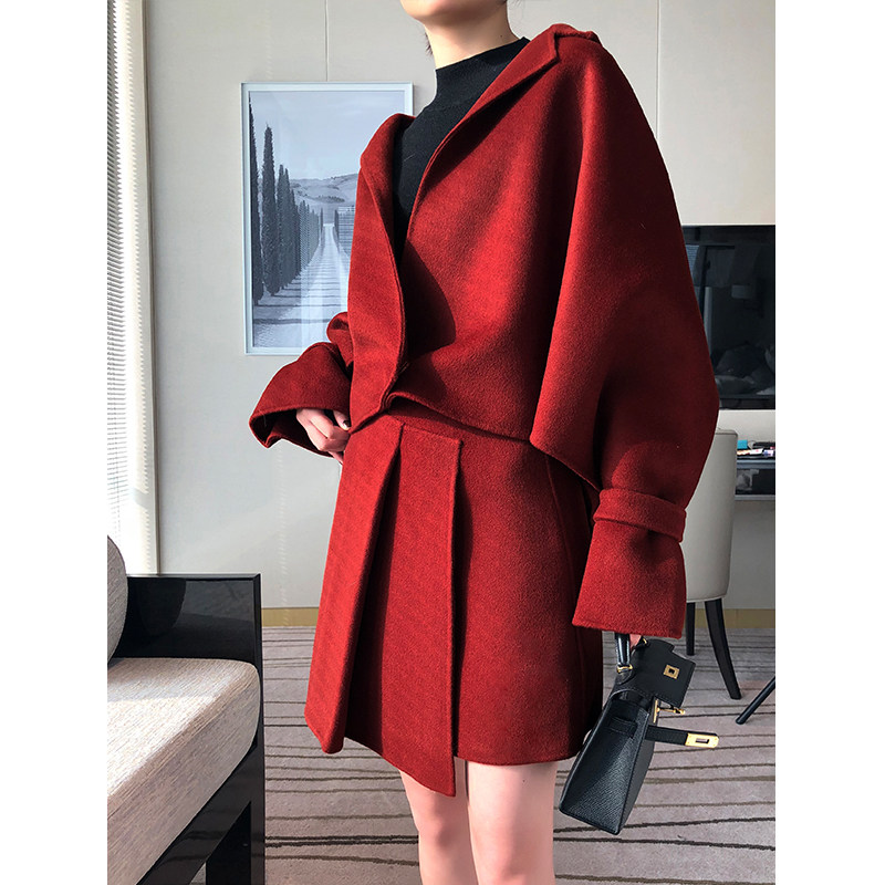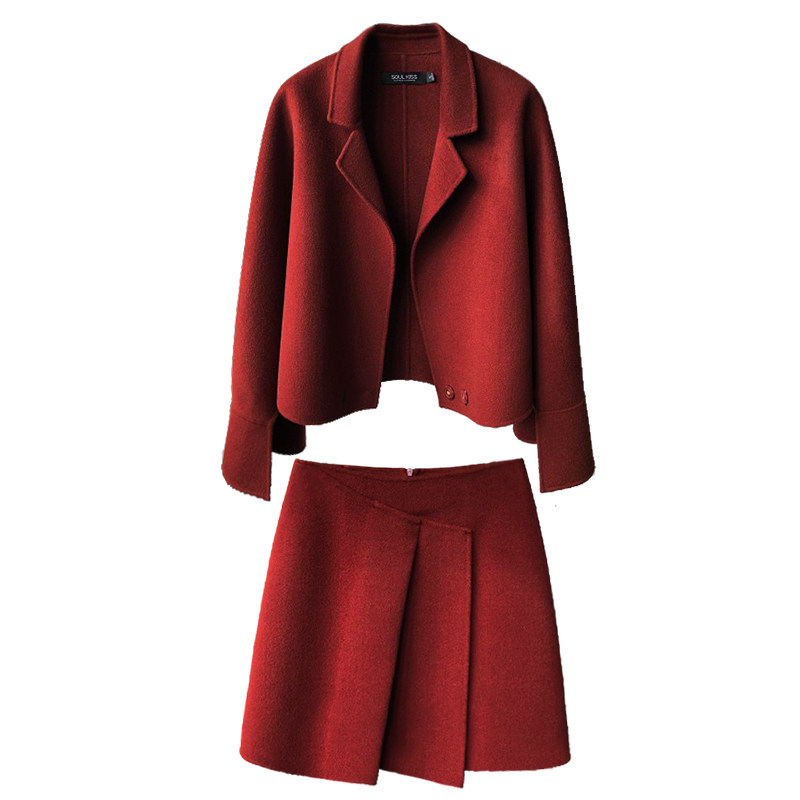 SOULKISS classic du home original design custom virgin cut double-sided woolen two-piece suit skirt female