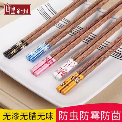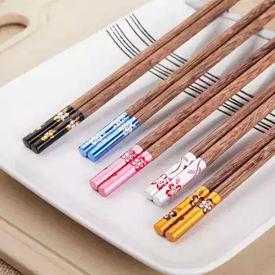 Chopsticks household solid wood home set without paint and wax-free mahogany set 5 pairs 10 fast-speed wooden Wood high-grade chicken wing Wood