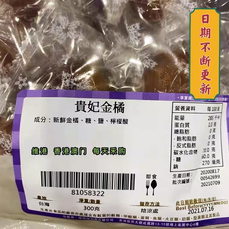 Hong Kong Upstairs Chaise Kumquat 300g Taiwan specialty Healthy snack Cool fruit Dried candied fruit