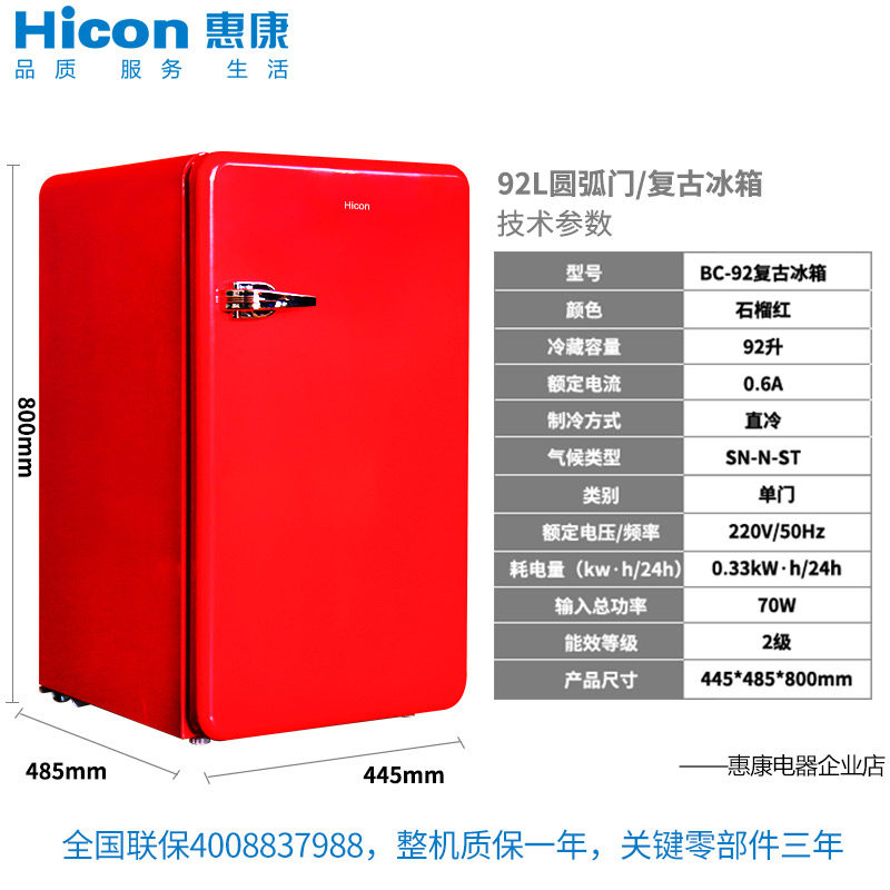HICON WELLCOM BC-92R SMALL REFRIGERATOR Home Small Apartment Refrigerated Homestay Vintage Xiaoice Box Refrigerator