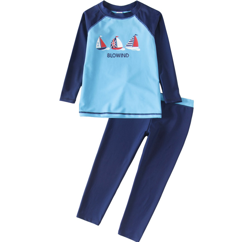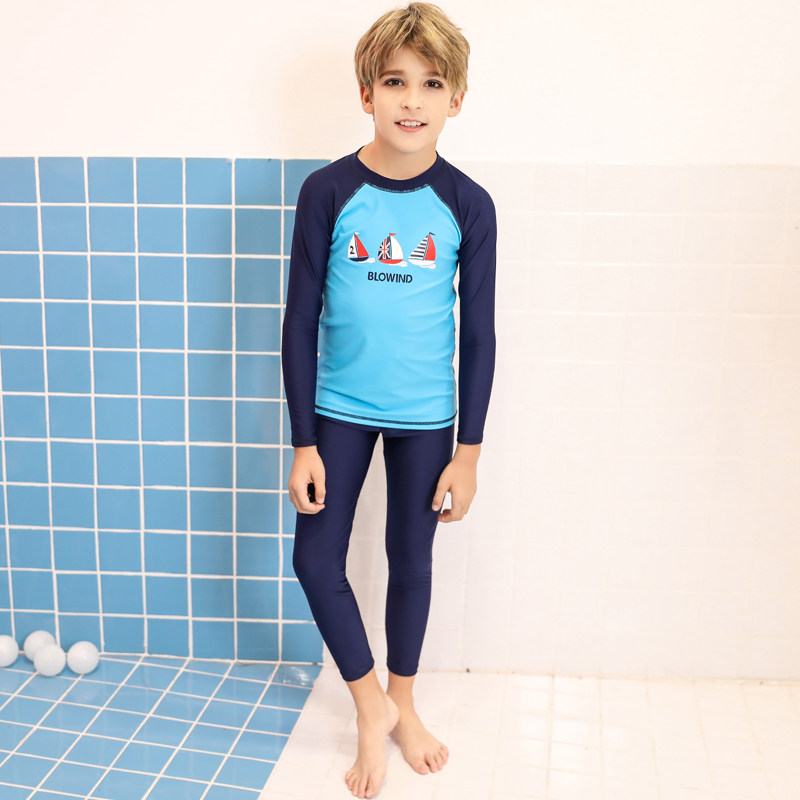 Blowind Children's swimsuit for boys Medium and large children Sunscreen Quick-drying split vacation boys trousers Long sleeve swimsuit