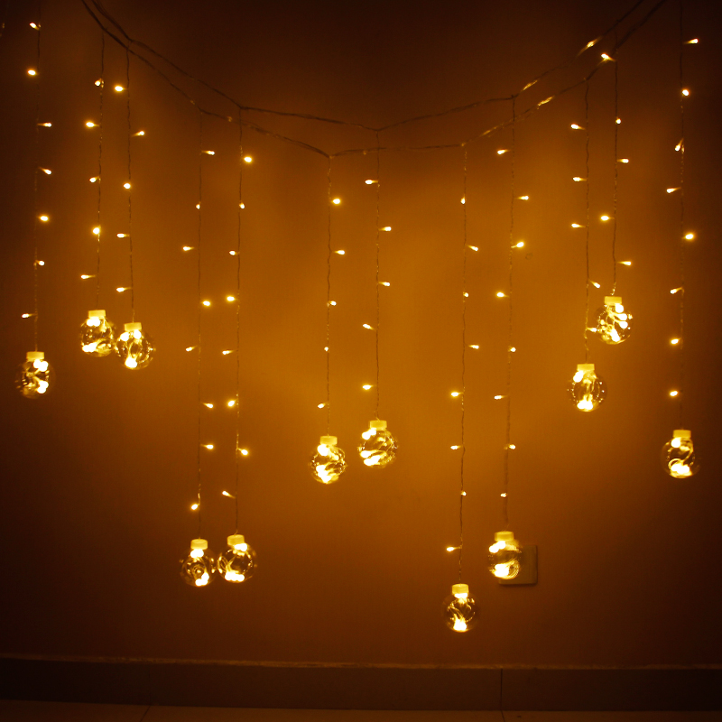 Light strings-Seven colorful balls (delivered with 3 hooks) Lights string-Seven colorful five stars (delivered with 3 hooks) Lights string-warm ball (delivered 3 hooks) Lights string-Warm 5 Stars (deliver 3 hooks) Cotton line Ball light