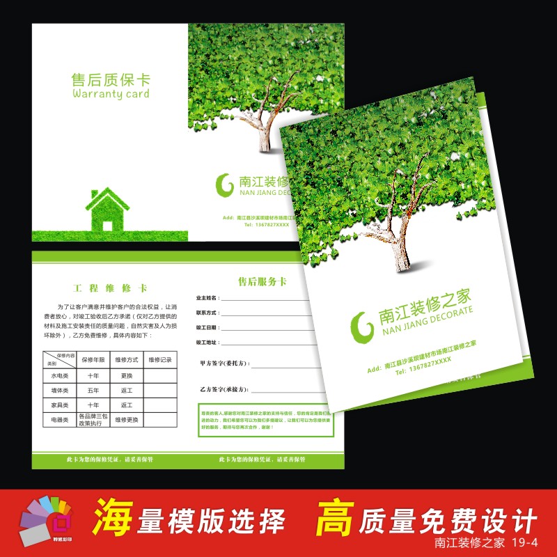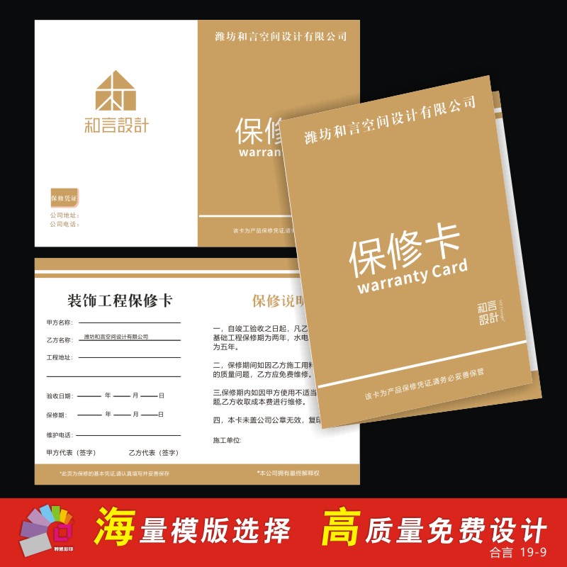 Decoration company engineering warranty card Decoration company decoration warranty Carmen window after-sales service card manual printing