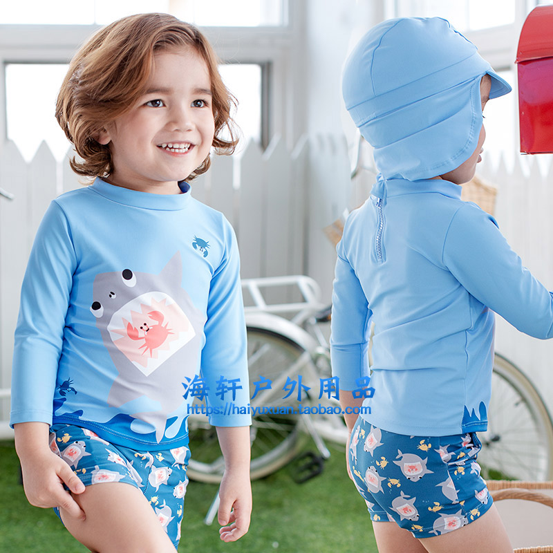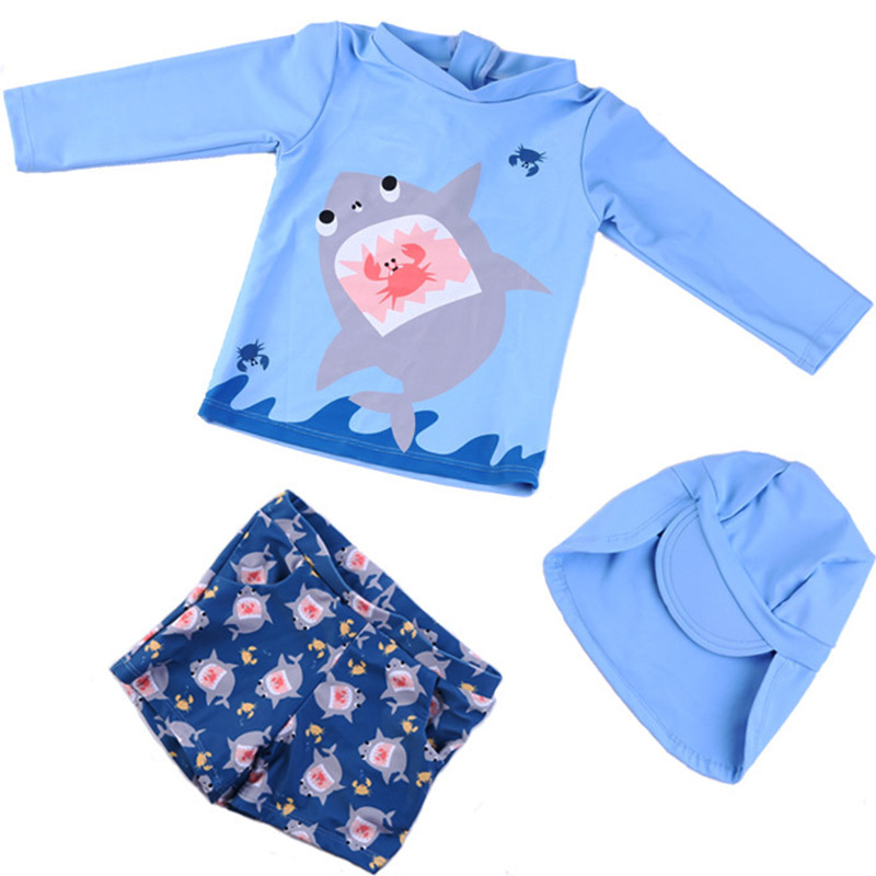 Children's swimsuit Boys swimming trunks suit Baby one-piece two-piece middle and large children long sleeve sunscreen children cute cartoon