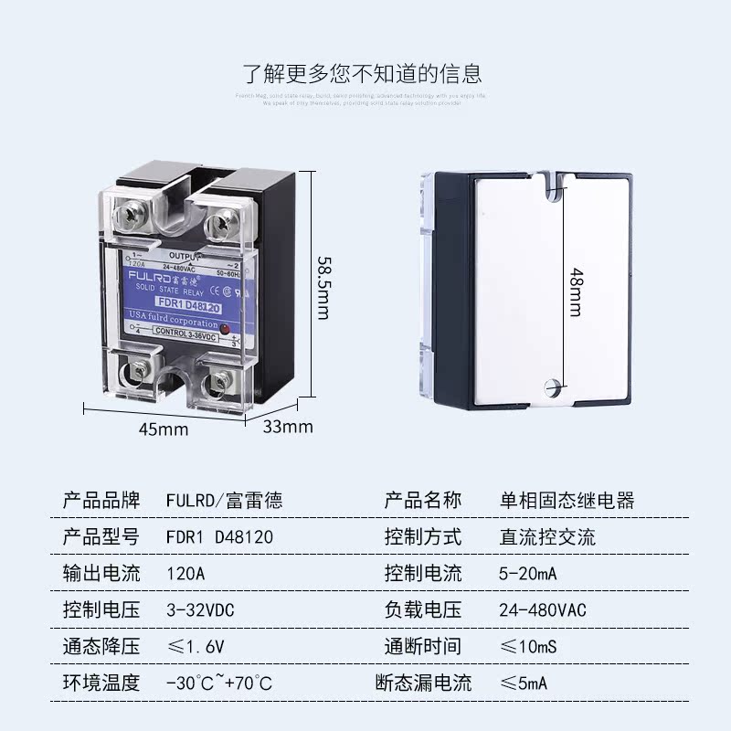 American Furede single-phase solid-state relay FDR1 D48120 DC controlled AC SSR-120DA