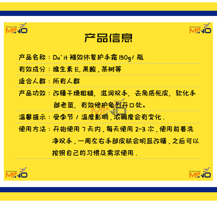 Spot Australia Duit First Aid Hand Membrane Protective Hand Cream 150g to Horniness Moisturizing Repair Rough Old Cocoon