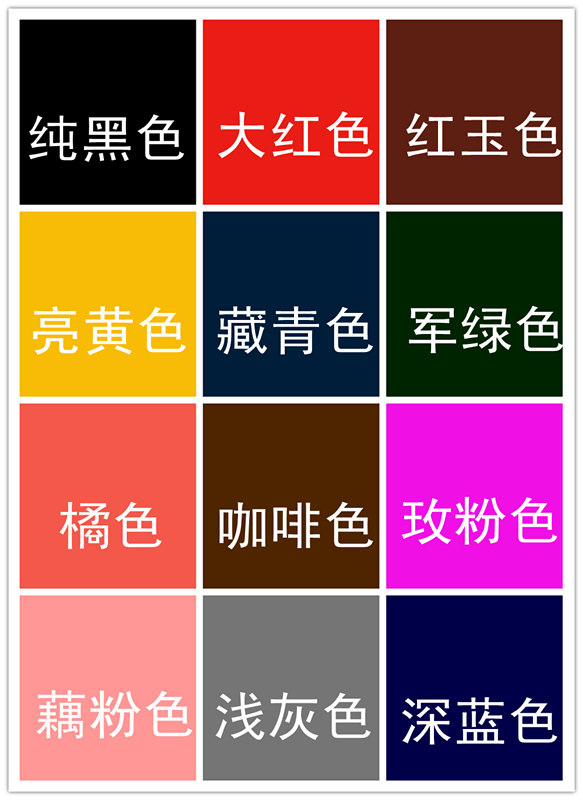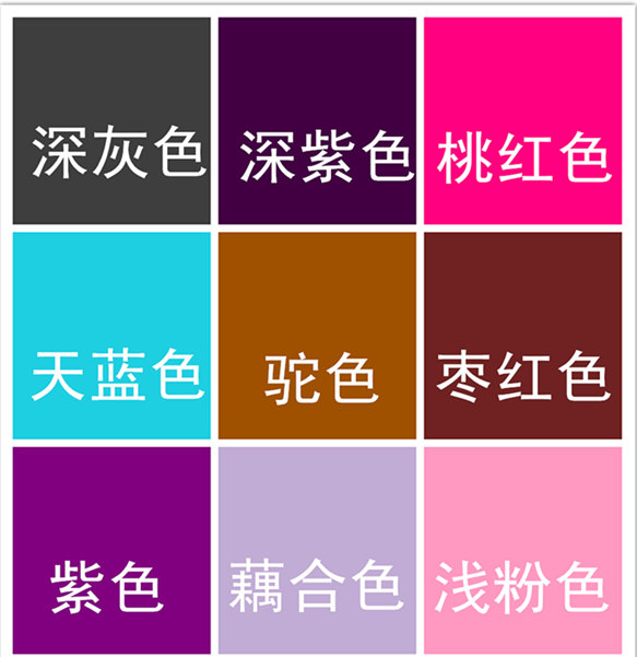 Dark Gray Black Orange Yellow Army Green Sky Blue Royal Blue Dark blue Navy Blue Purple Camel Khaki White Light gray Pink Peacock Blue Dark Purple Lemon Yellow Lake Blue Rose pink Maroon Medium Hemp Gray