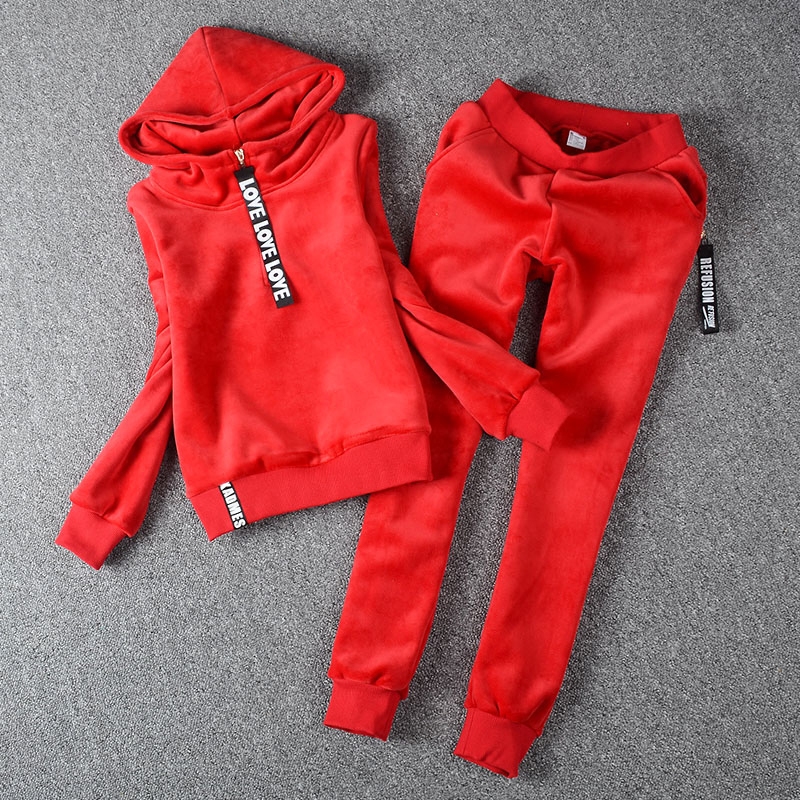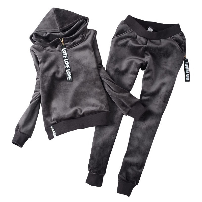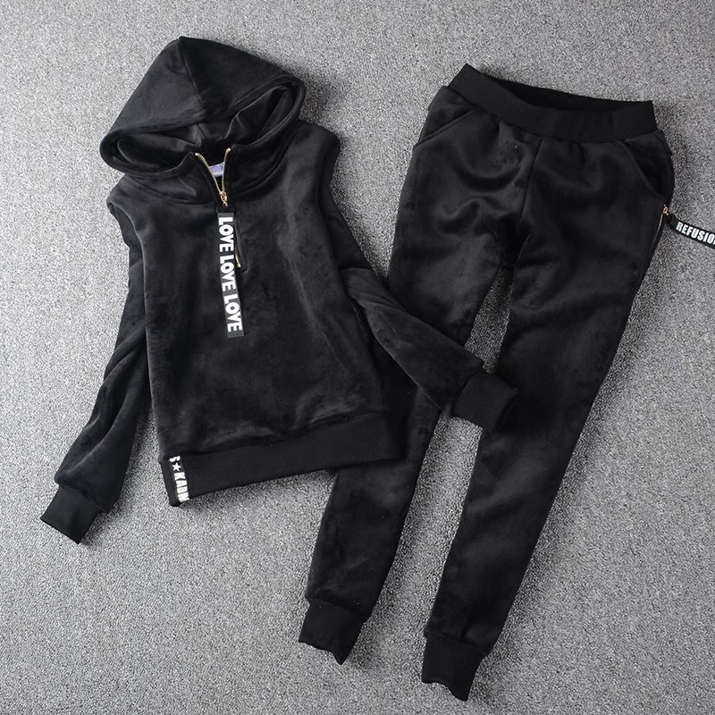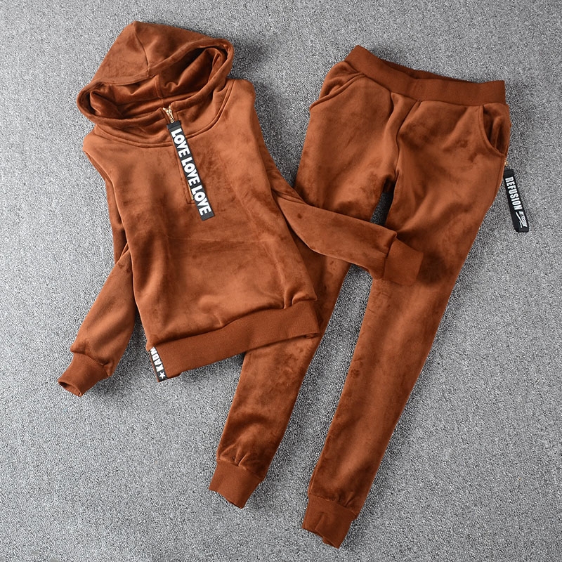 Gold velvet suit female 2021 new autumn and winter sportswear plus velvet thickened loose double-sided velvet casual two-piece suit