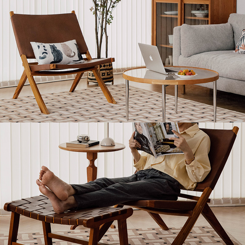 Indonesia Imported Nordic Genuine Leather Woven Folding Casual Chair Designer Sloth Chair Balcony Deck Chair Single Sofa Chair