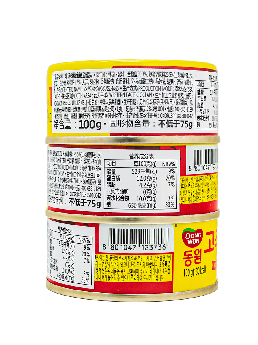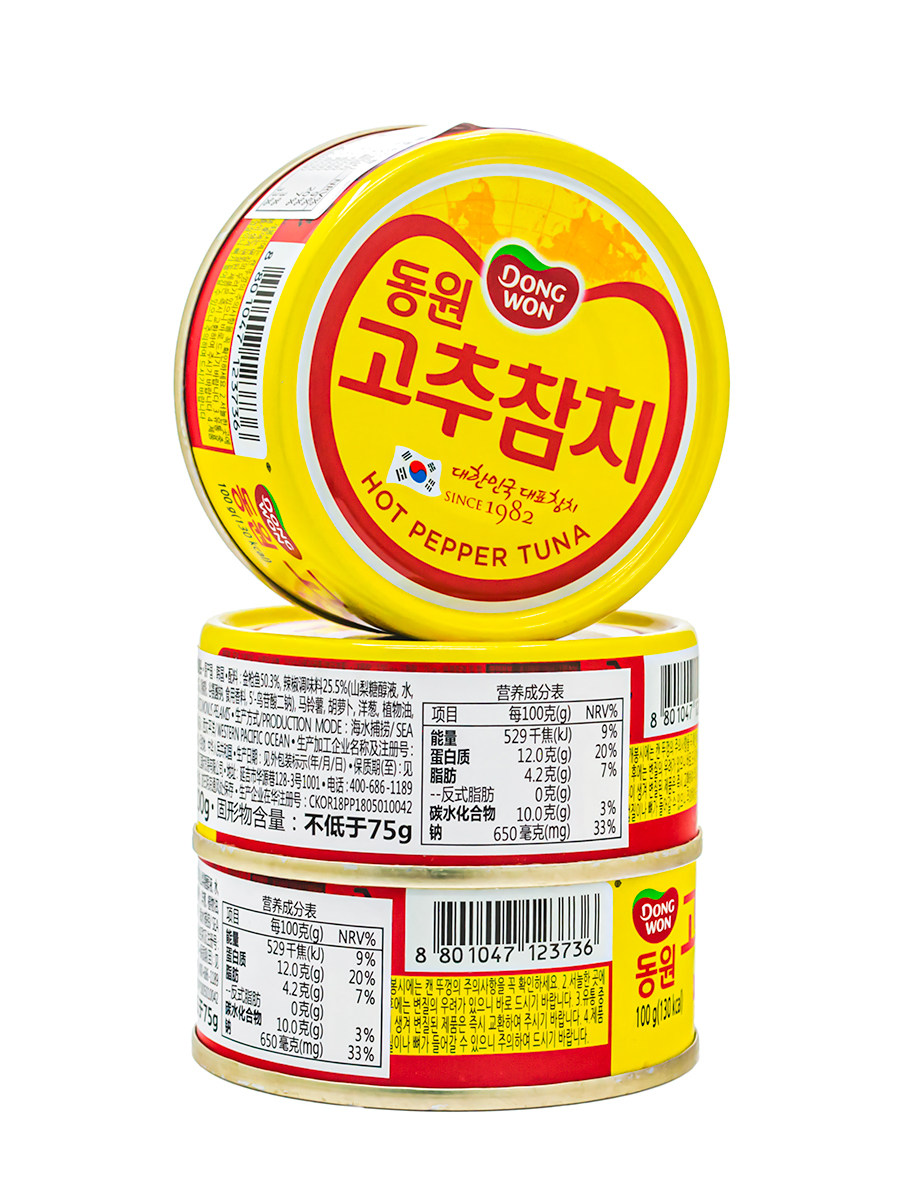South Korea DONGWON Dongyuan Hot Chili Canned Chili Pepper Swallow Fish Canned open jar ready-to-eat 100g per jar