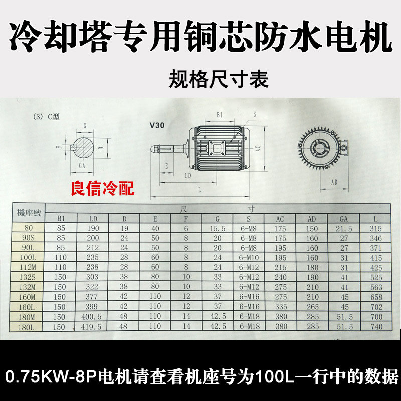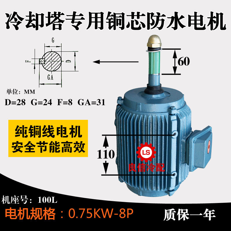 Cooling tower motor 0 75kw-8p cooling water tower motor copper core vertical waterproof motor heat dissipation motor