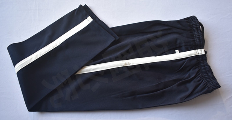 School uniform pants dark blue sports pants high school students men's and women's trousers school pants a bar white edge autumn and winter sapphire blue double red strips