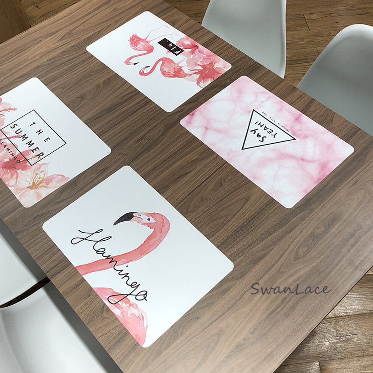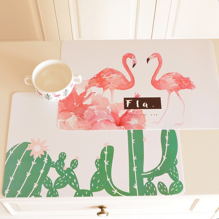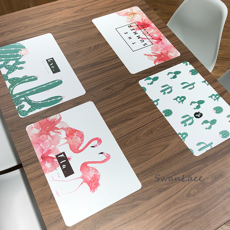 SwanLace good things Nordic cactus flower flamingo pose background waterproof hard table mat oil-proof placemat