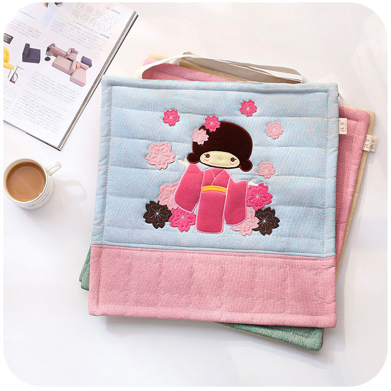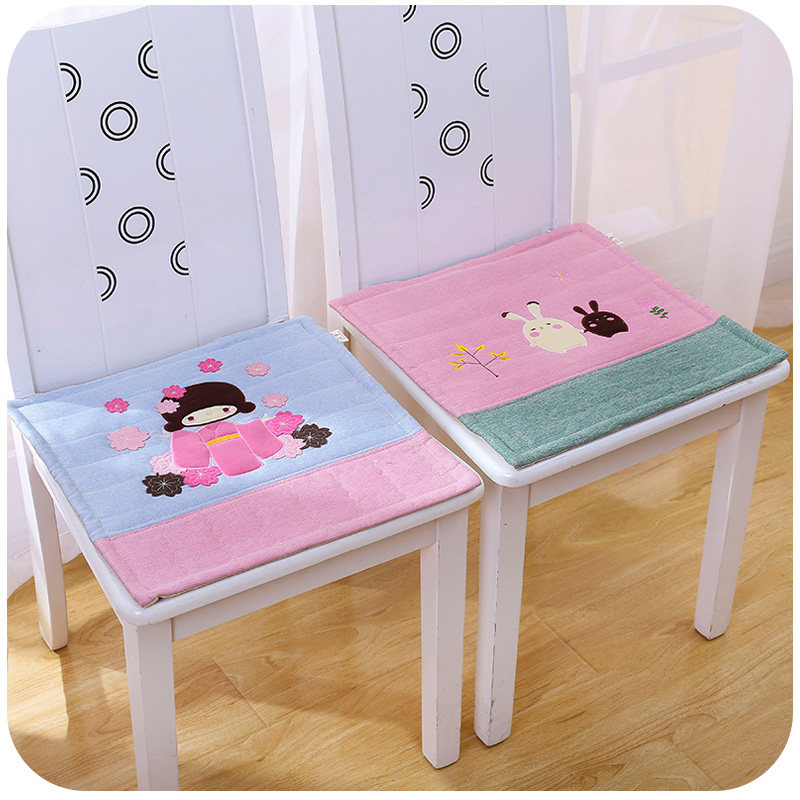 Happy Double Rabbit Monkey Solid Embroidery Handmade Cloth Art Cotton Linen Quilted Dining Chair Cushion Student Chair Cushion Non-slip Cushion