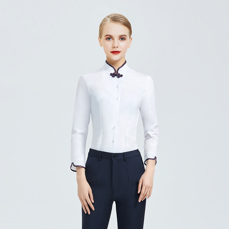 East Flight Stewardess Uniformed White Shirt Woman to Temperament High-end Big Cards Empty interview Shirt Brief Work clothes for work