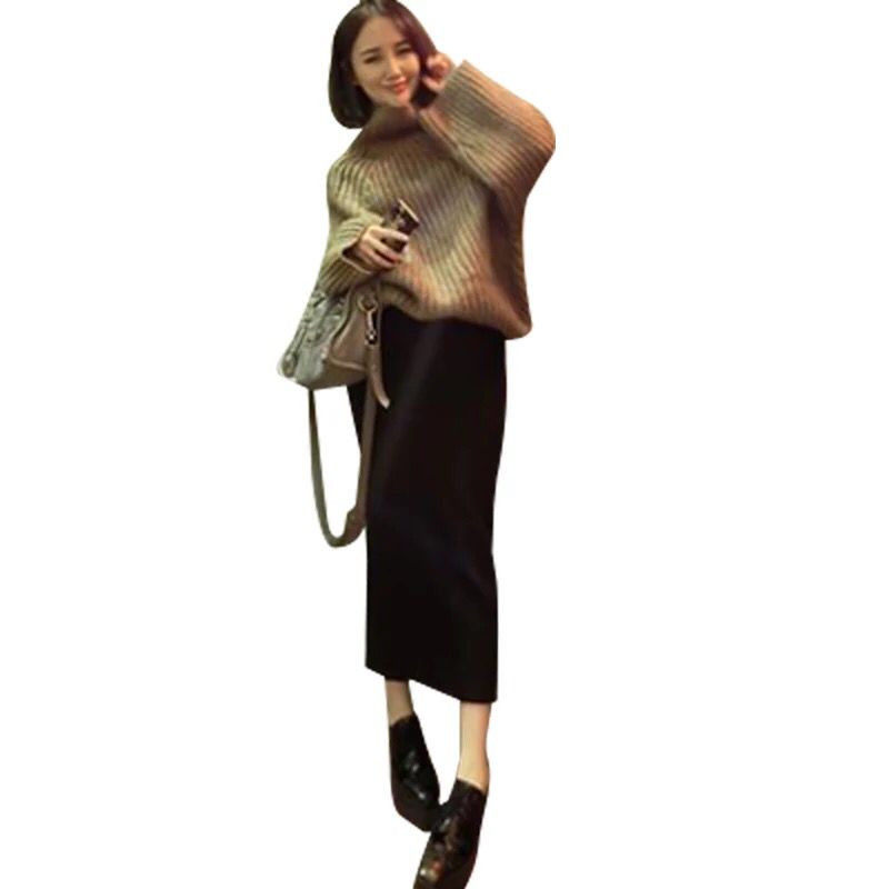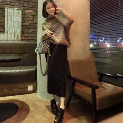 Pregnant women skirt autumn and winter Korean version of the belly support autumn knitted mid-length version of the tide mother split hip skirt one-step skirt