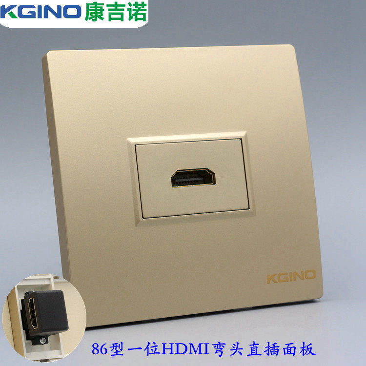 86 type champagne color HDMI high-definition elbow socket gold 90 degree HDMI digital tv L-type female to female wall plug