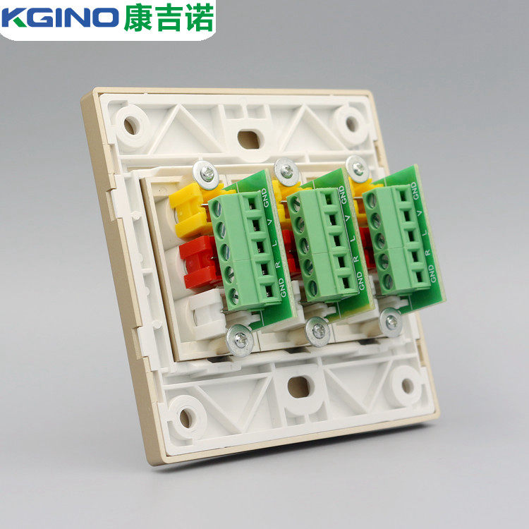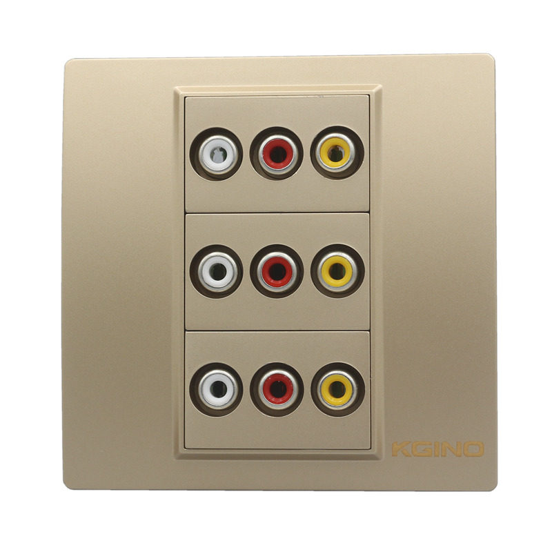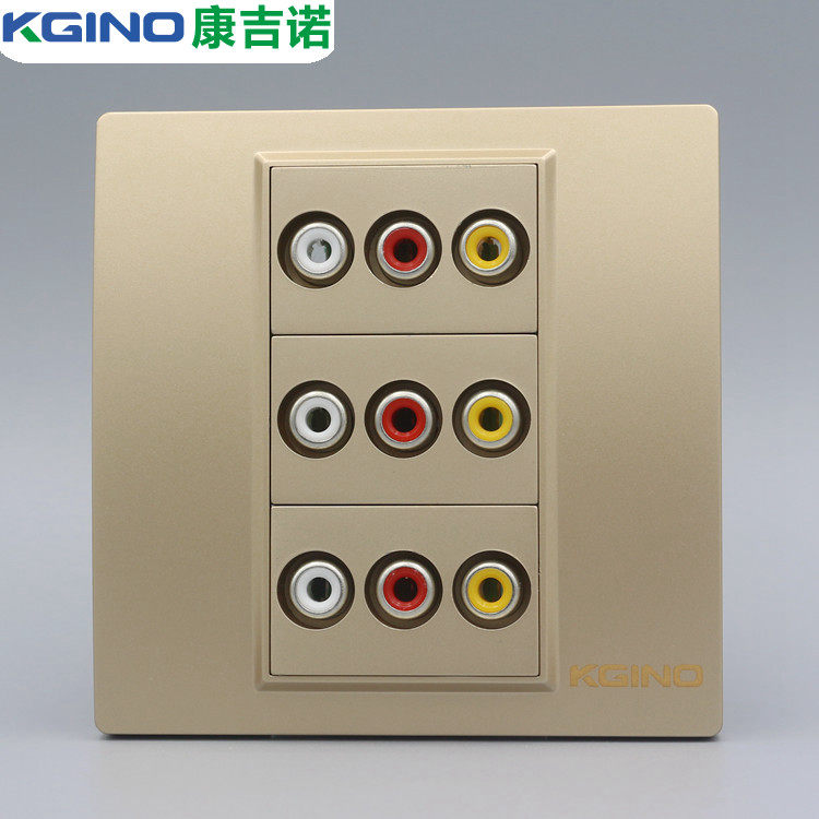Champagne 86 RCA color differential audio socket Golden 3 weldless AV red yellow and white trilotus audio wall plug