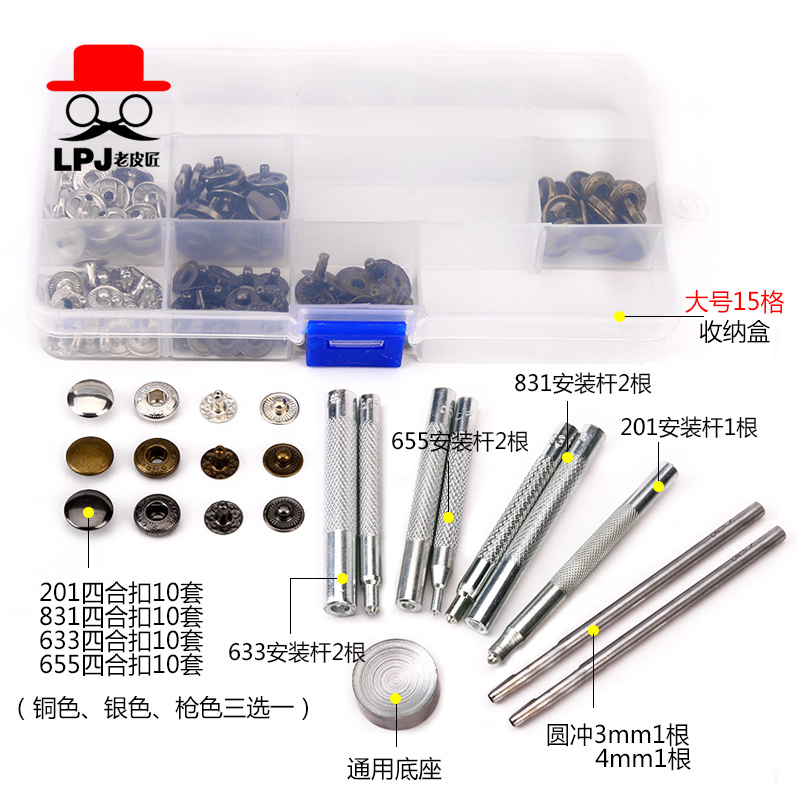 Metal tetrad buckle mounting tool Dark to press the four-in-four-in-four-fit snap-button-button-free nail-to-round shape of the round-shaped