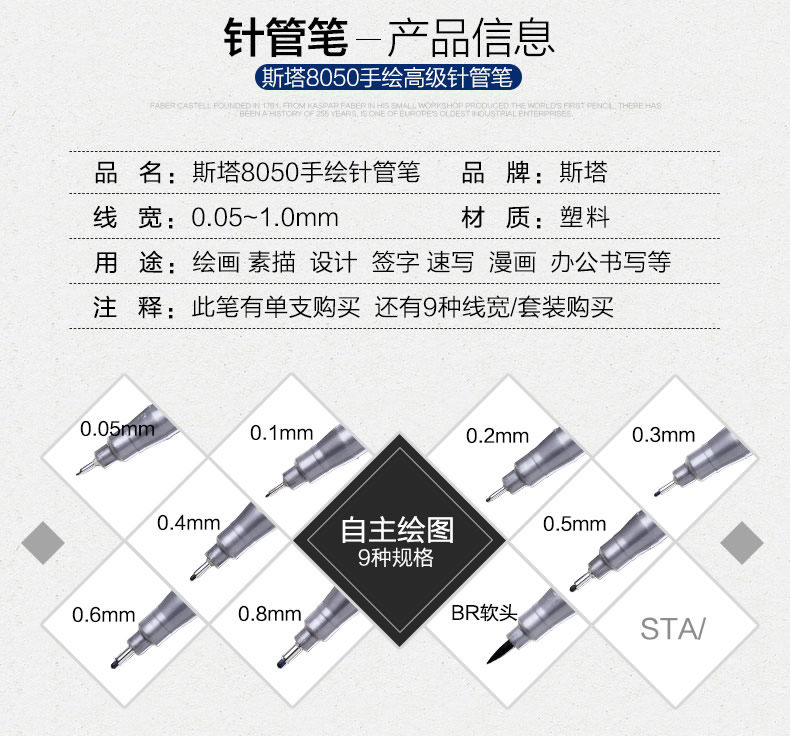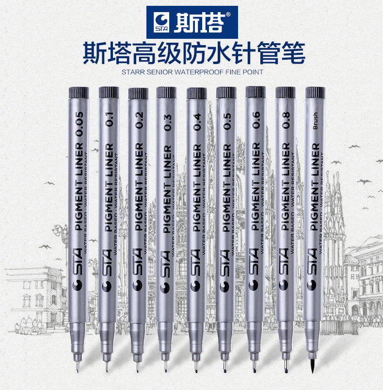Stadt 8050 hand-painted needle tube pen waterproof hooking pen sketching pen sketch pen design hand-painted paintbrush complete 9 supports