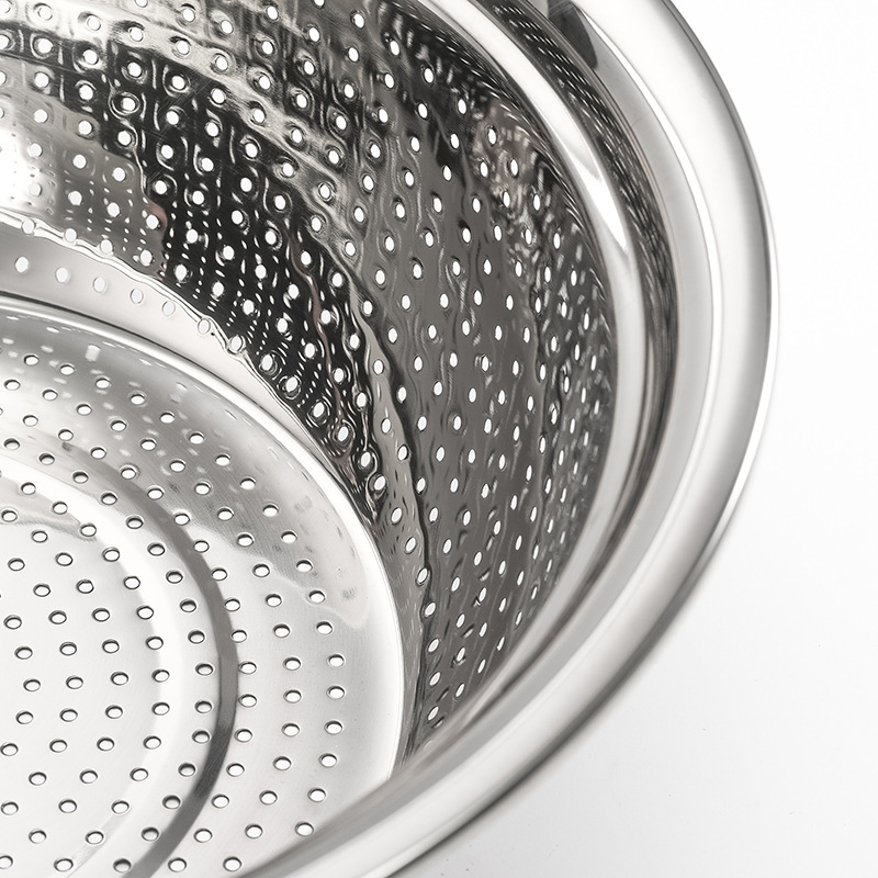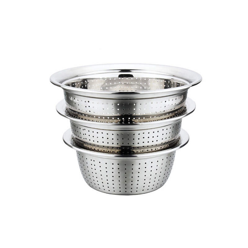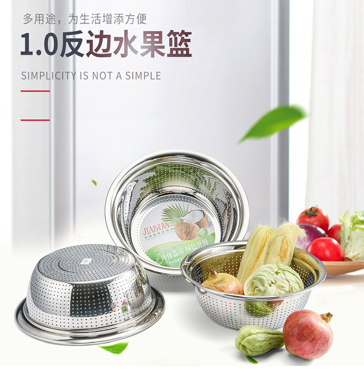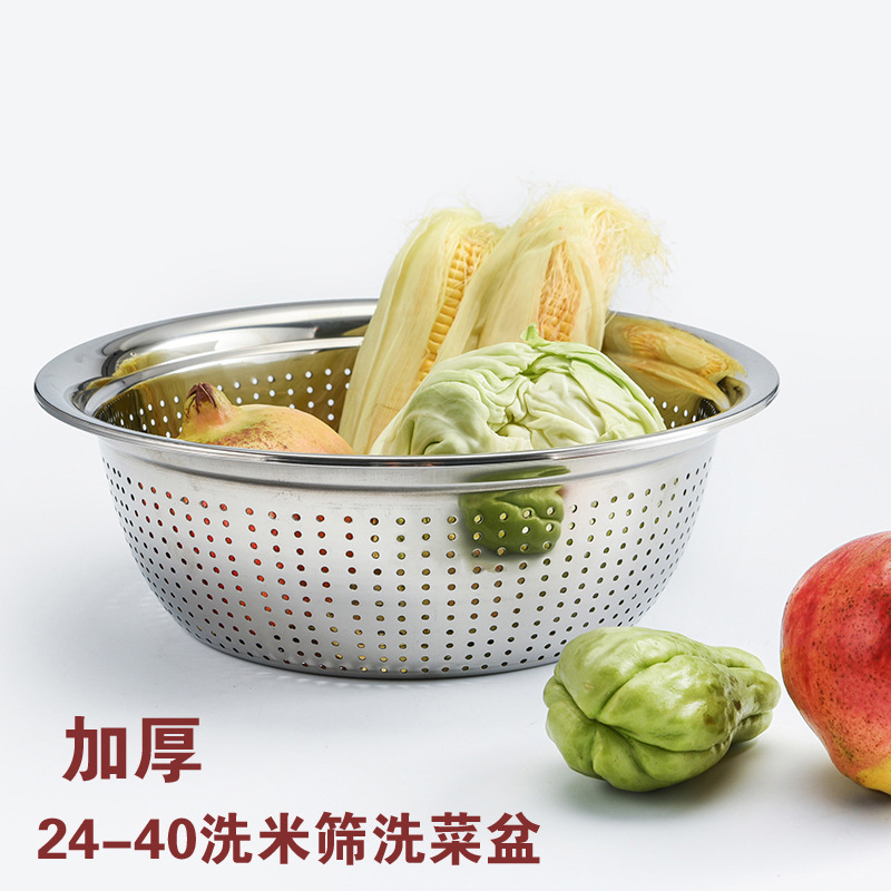 Stainless steel drain basin washing rice sieve kitchen household 24cm-70cm thick vegetable basin fruit basin punching drain basin