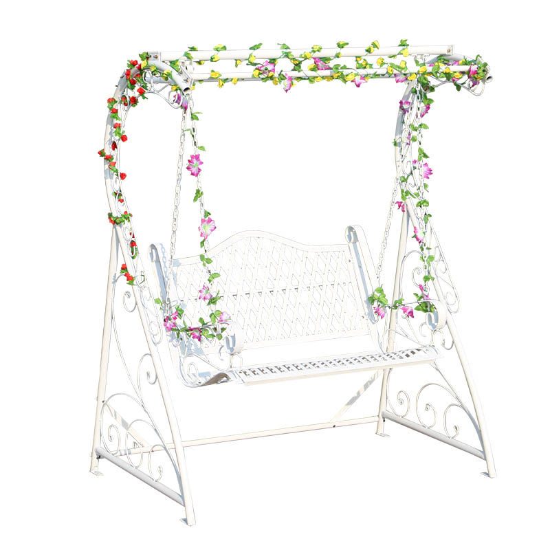 White double swing Hanging basket hanging chair Wrought iron outdoor swing Indoor home Outdoor courtyard Garden Balcony Rocking chair