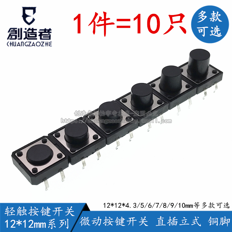 Creator light touch button switch vertical straight plug 4 feet 12*12*4 3 5 6 7 8 9 10mm