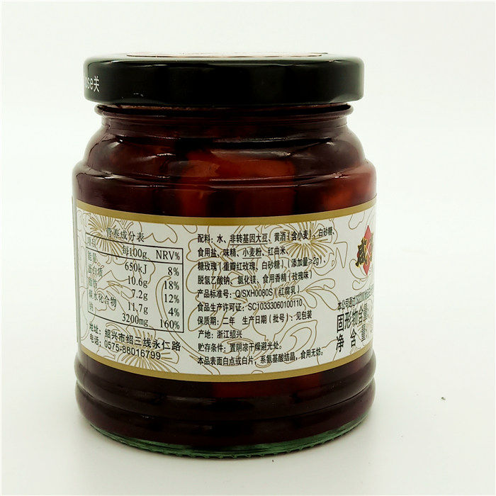 Water soybean yellow wine edible salt white granulated sugar ham MSG wheat flour red yeast rice magnesium chloride dehydroacetic acid sodium white sugar rose