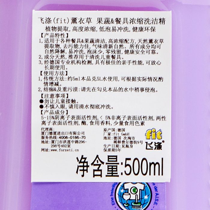 fit (flying) German original imported detergent lavender fruit and vegetable tableware concentrated detergent 500ml