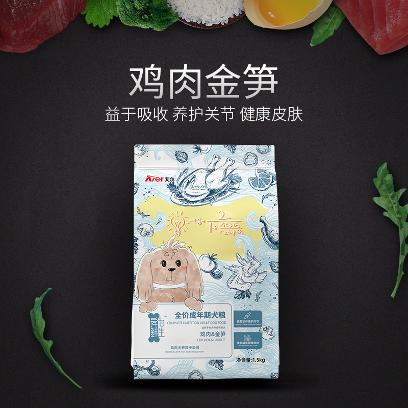 Aier chicken golden bamboo shoots dog food 1 5kg full breed universal adult dog food teddy golden retriever corgi dog food