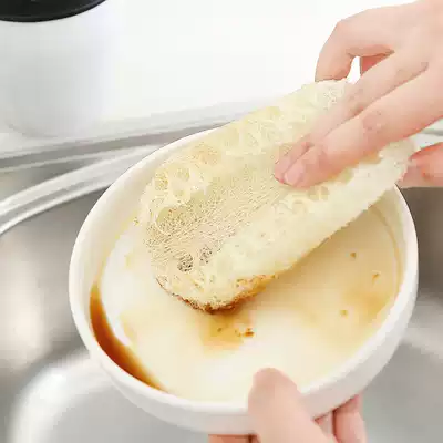 Natural loofah does not stick with oil and does not hurt pot bath and exfoliate brush bowl pan kitchen cleaning 3 pieces