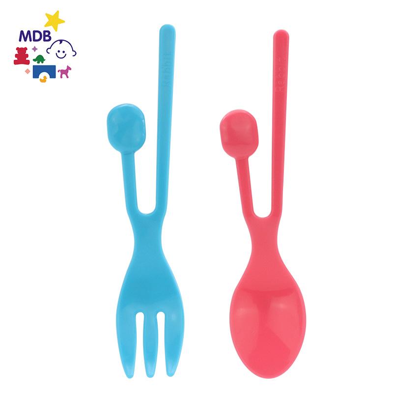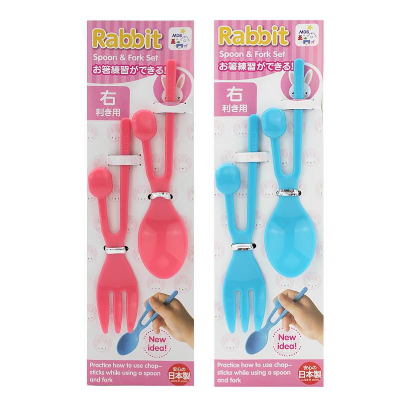 Rabbit training spoon and fork combination tableware (blue)Rabbit training spoon and fork combination tableware(red)