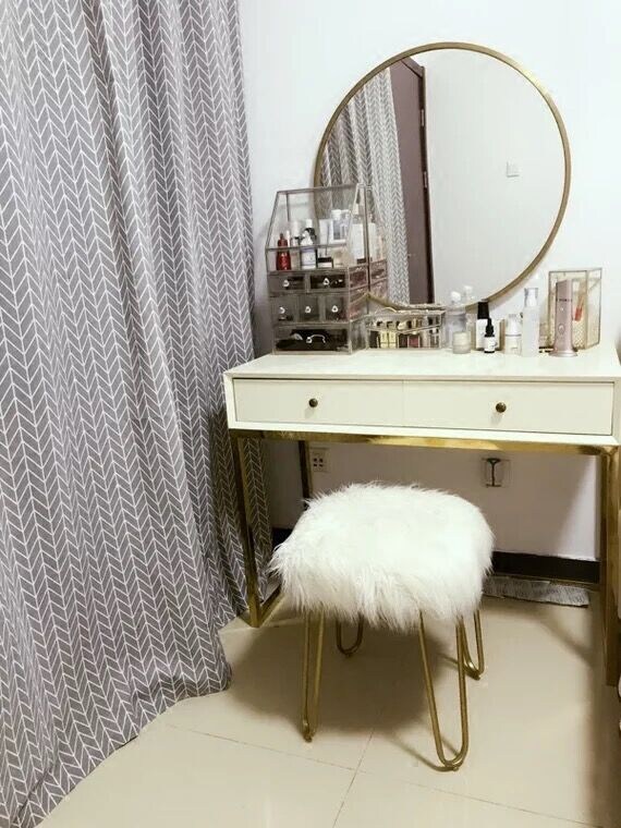 Nordic golden makeup chair plush stool white long plush stool bedroom makeup stool bed end stool changing shoe stool low round stool