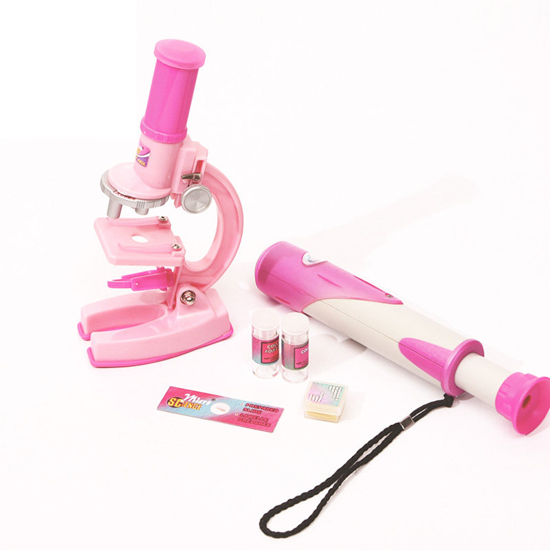 Hong Kong Yigo Microscope Telescope Pink Set 450 times Children's Student Microscope Teaching Aids Girls Gift