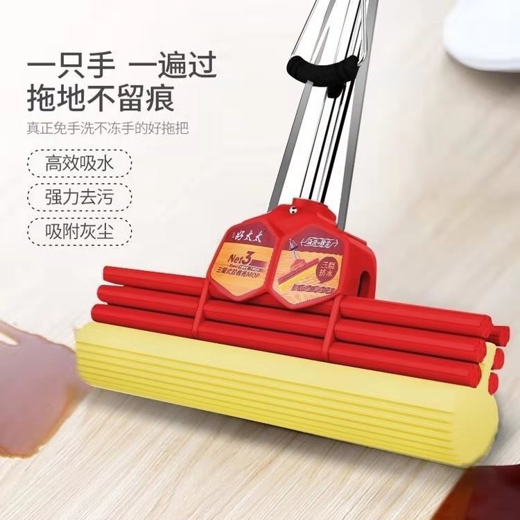 Good wife and daughter-in-law bold stainless steel water-absorbing rubber cotton roller-type squeeze water sponge mop head household mop