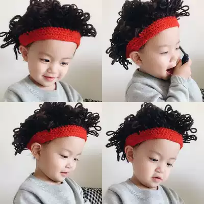 Daoming Temple with the same men and women children's baby wool explosive head knitted hat handsome short hair wig baby hat