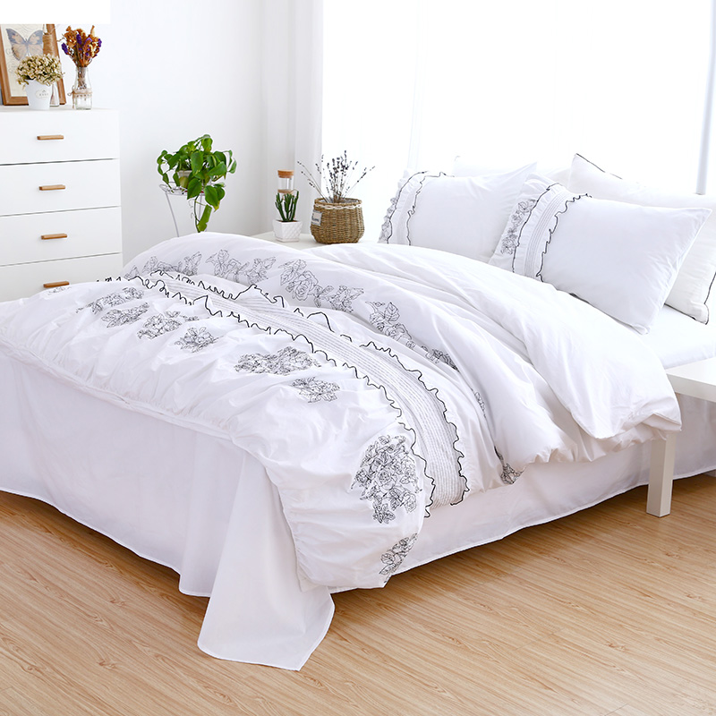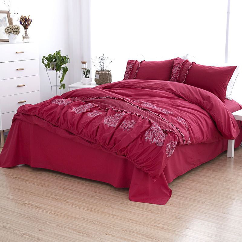Embroidered Peony Lotus Leaf Side Four-piece Set (Blue) Embroidered Peony Lotus Leaf Side Four-piece Set (Blue) Embroidered Peony Lotus Leaf Side Four-piece Set (Deep Blue)