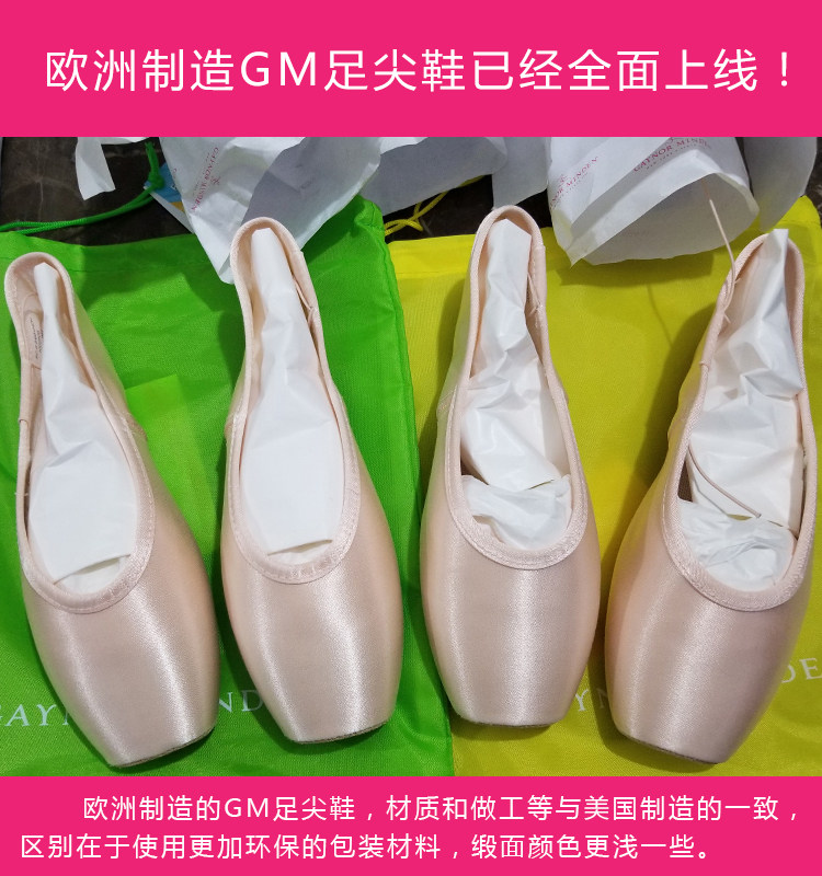 Gaynor Minden Europe imported GM ballet dance ladies foot satin leather toe shoes powder bag hard